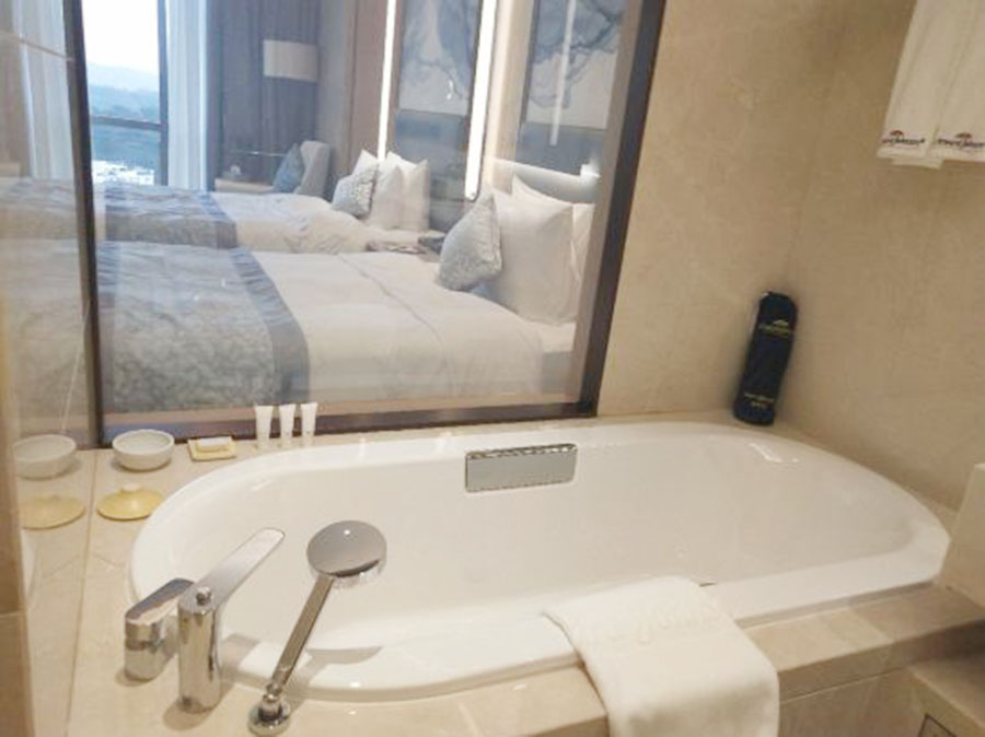酒店方通過考察對比,最終選定了我公司的調光玻璃作為衛浴玻璃隔斷的供應商,總量約800平方米,應用于200多間客房,給入住的賓客帶來新鮮的體驗。