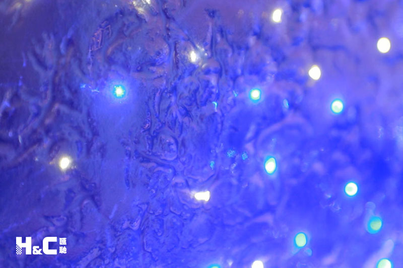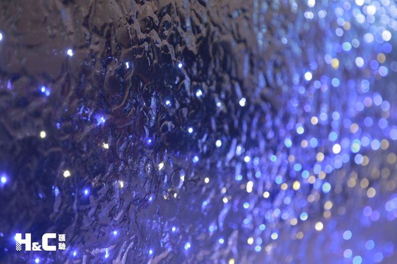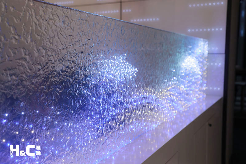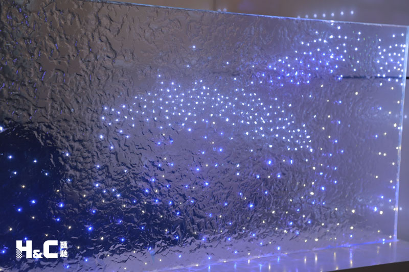 以往大家普遍認為LED發光玻璃只能由兩片平整的玻璃制成,而這一次,我們使用的是表面不平整的熱熔玻璃,將LED燈嵌入玻璃中。